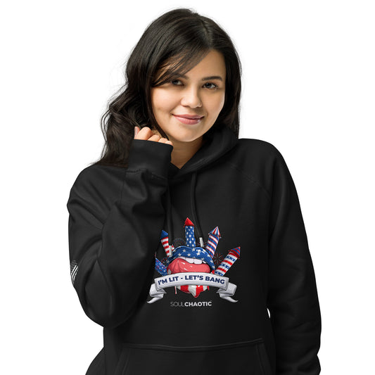 I'm Lit, Let's Bang - Freedom & Liberty - Unisex eco raglan hoodie